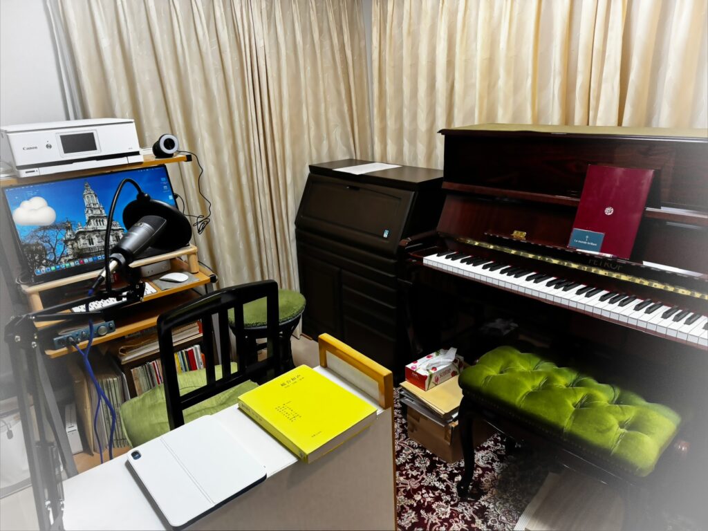 今までのオンラインレッスンでのPetrof Pianoの生音配信も、今般のコンデンサ―マイクの設置により、より良い形でお届けできるようになると確信しています。