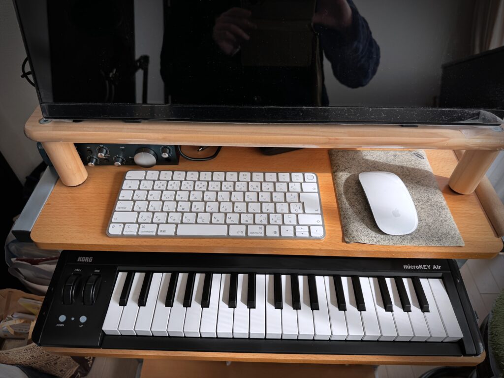 今般、新たにMIDIキーボードを新調し、更には懸案だったコンデンサーマイクスタンドも無事設置できました。